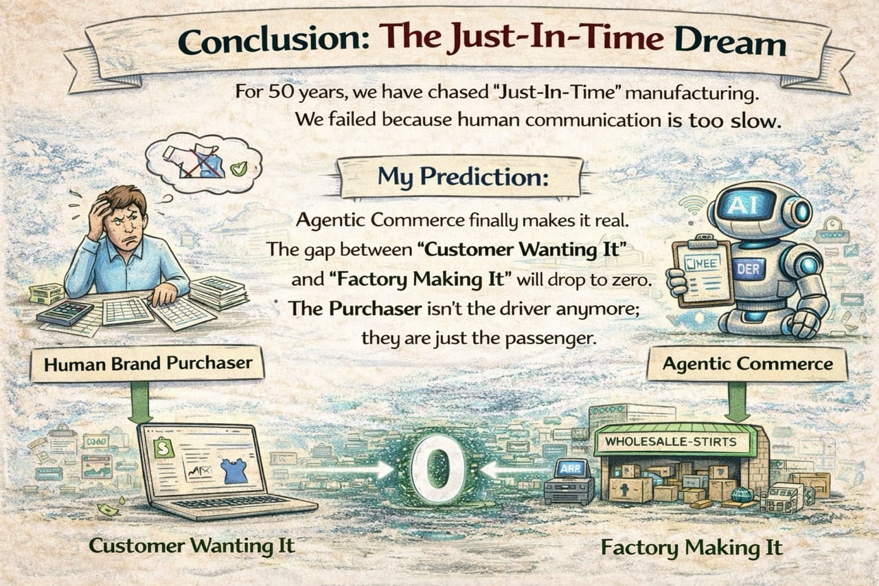 My Prediction: Agentic Commerce finally makes it real. The gap between "Customer Wanting It" and "Factory Making It" will drop to zero. The Purchaser isn't the driver anymore; they are just the passenger.