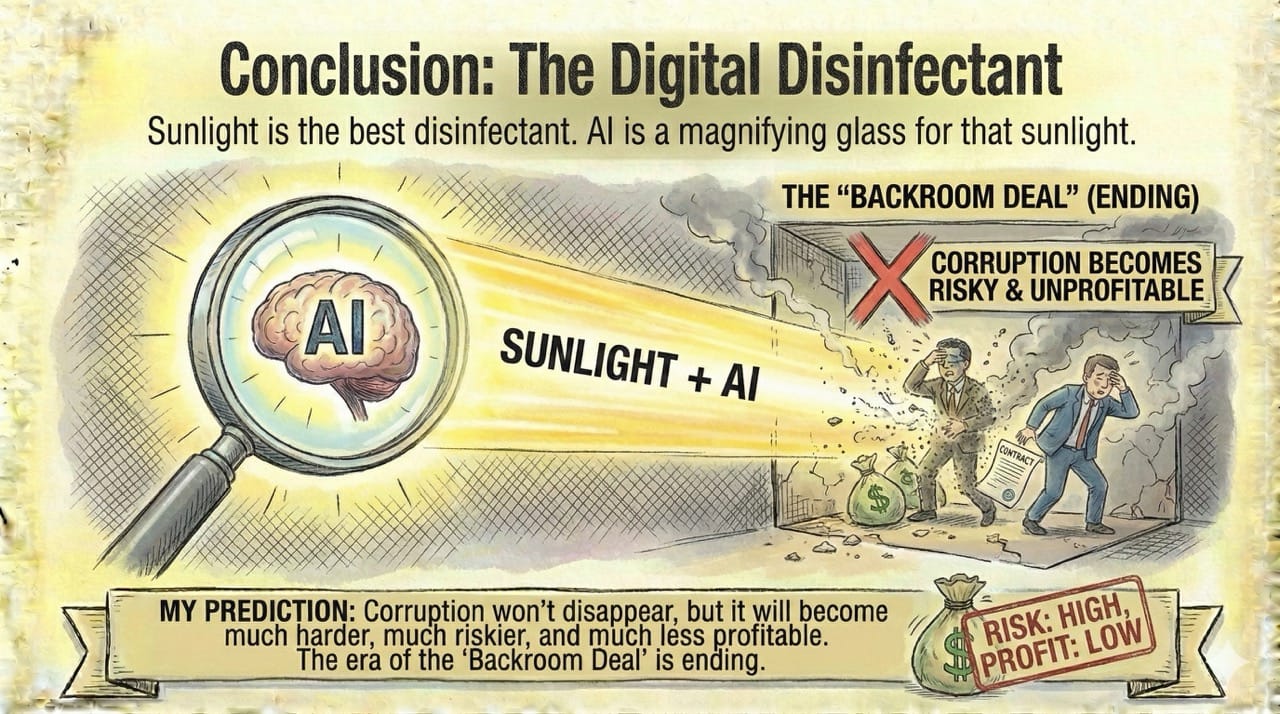 Corruption relies on obscurity. AI is a universal auditor that reads every contract, tracks every cent, and never sleeps.