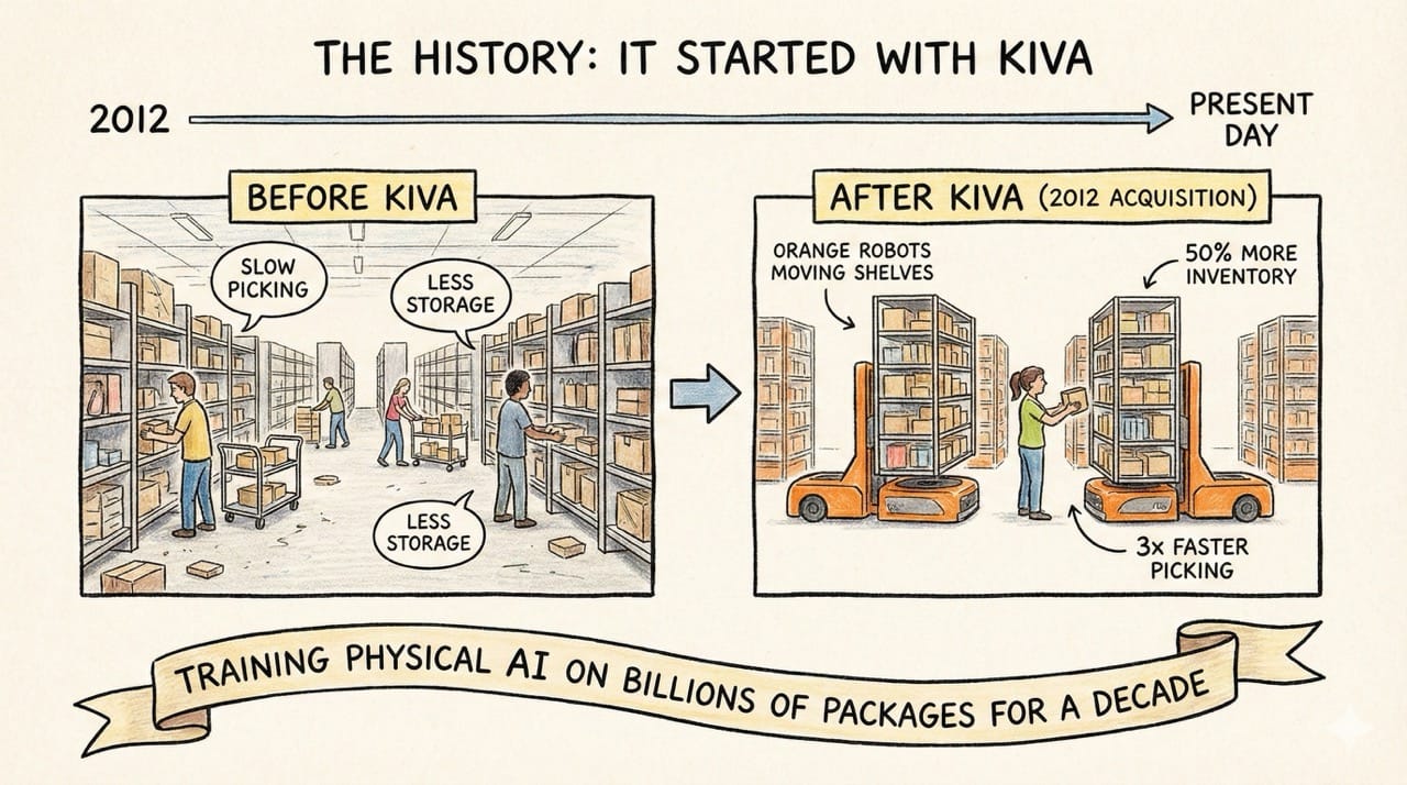 Inspiration: Realizing that while OpenAI gets the headlines, Amazon has deployed 750,000 robots that are actually doing physical work today.