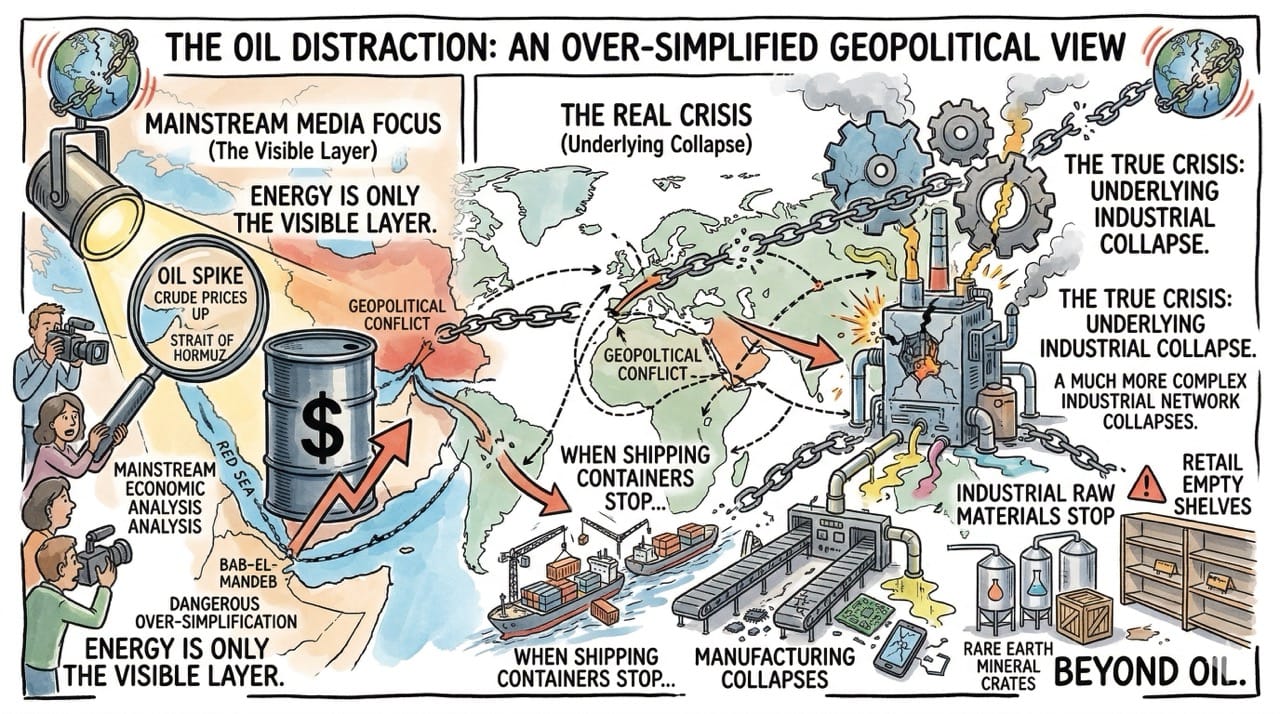 Mainstream economic analysis is currently hyper-focused on the Strait of Hormuz and the inevitable spike in crude oil prices.