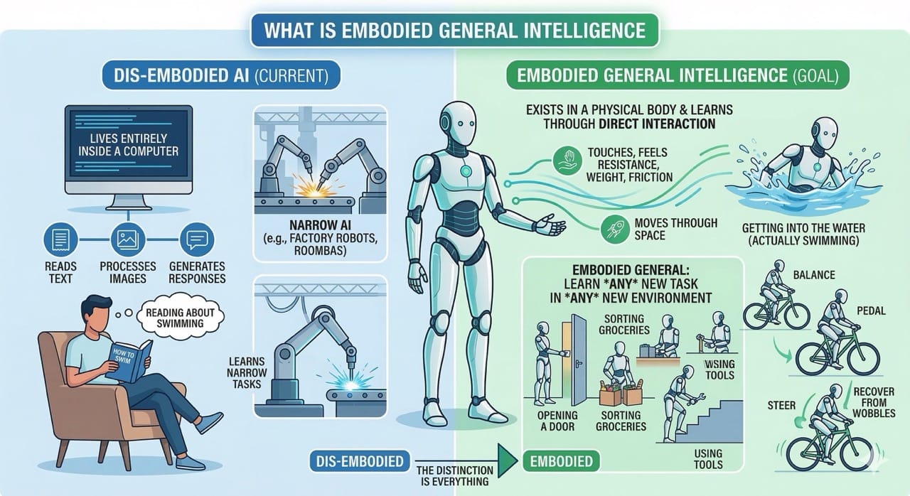This is the fundamental gap that embodied general intelligence is trying to close.