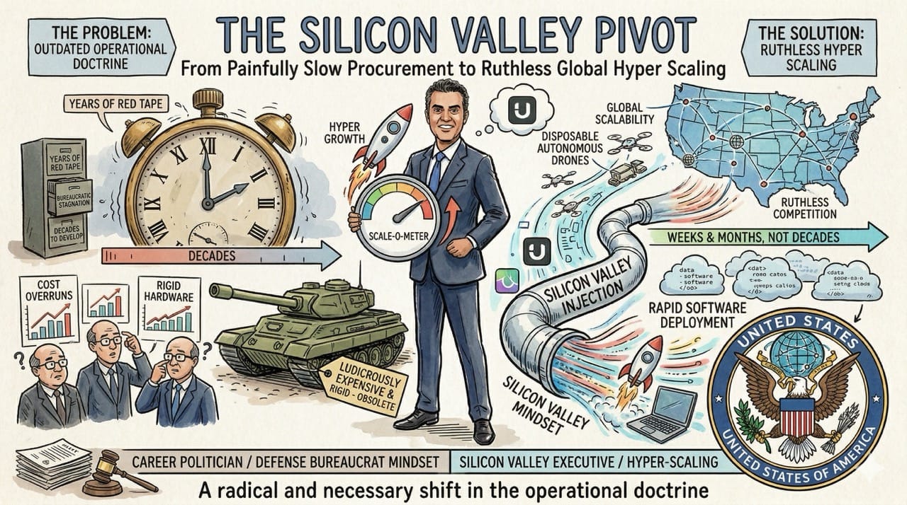 The United States is abandoning traditional bureaucratic procurement. They are injecting Silicon Valley hyper growth directly into the defense sector to prepare for autonomous warfare.