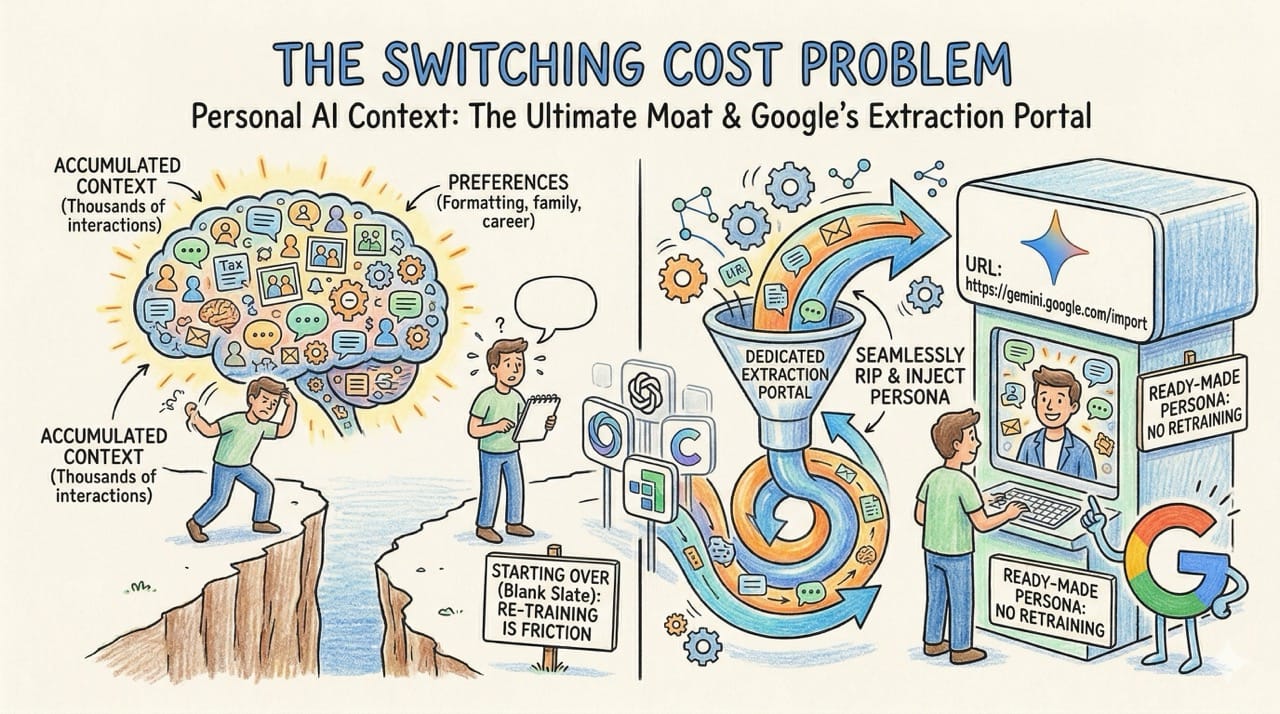 Google is aggressively stealing users from competitors by allowing them to instantly port their carefully curated AI profiles and historical chat data.