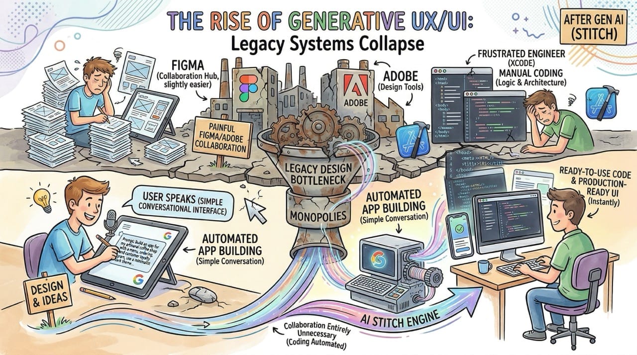 We spent the last decade treating software design and software engineering as two completely separate disciplines. Google Stitch just merged them into a single text prompt, effectively ending the era of the manual frontend developer.