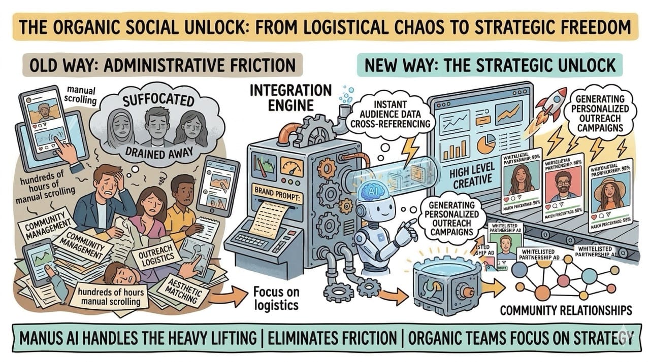 Organic social teams are traditionally suffocated by the logistics of community management and outreach.