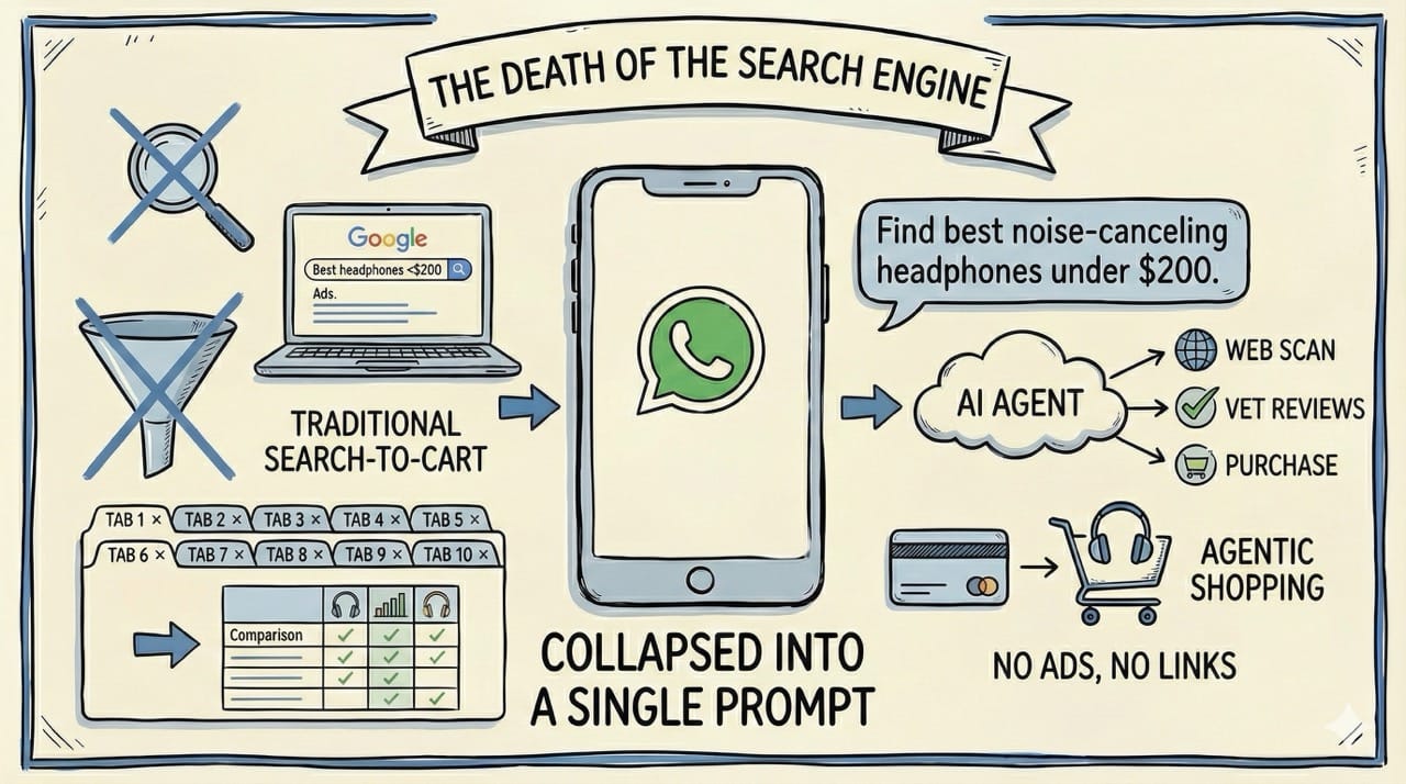 Agentic shopping collapses this entire process into a single text prompt.