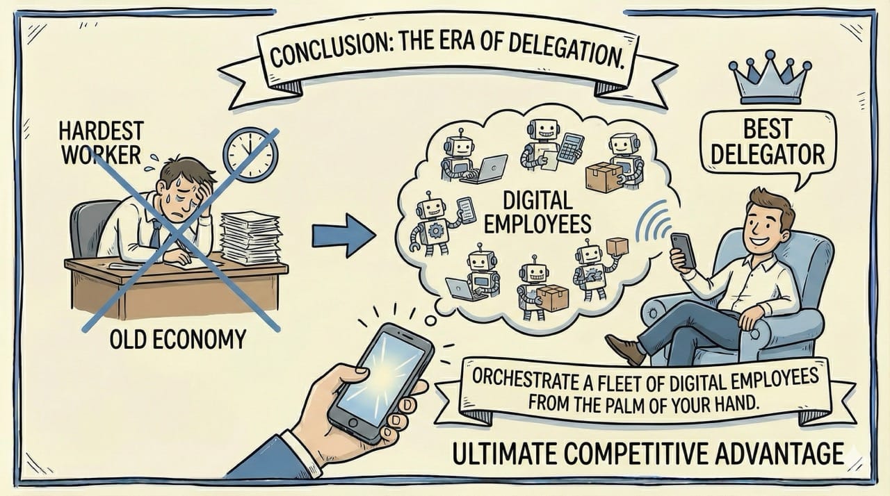 The ultimate competitive advantage is learning how to orchestrate a fleet of digital employees from the palm of your hand.