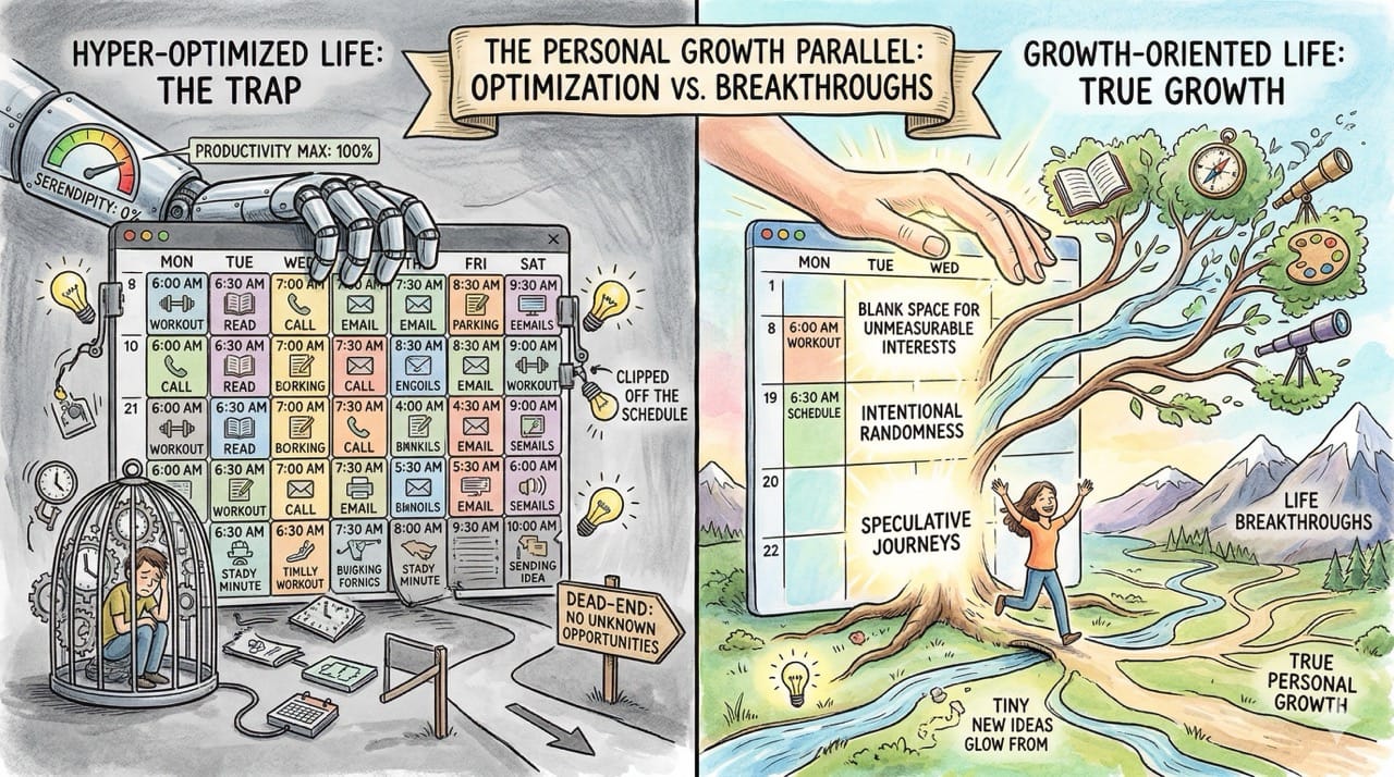 If you hyperoptimize your daily schedule for absolute productivity, you completely eliminate the random serendipity that leads to massive life breakthroughs.