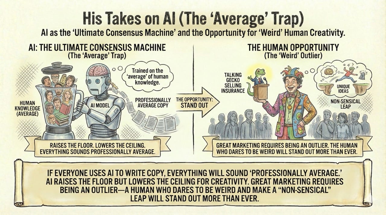 His Takes on AI (The "Average" Trap)