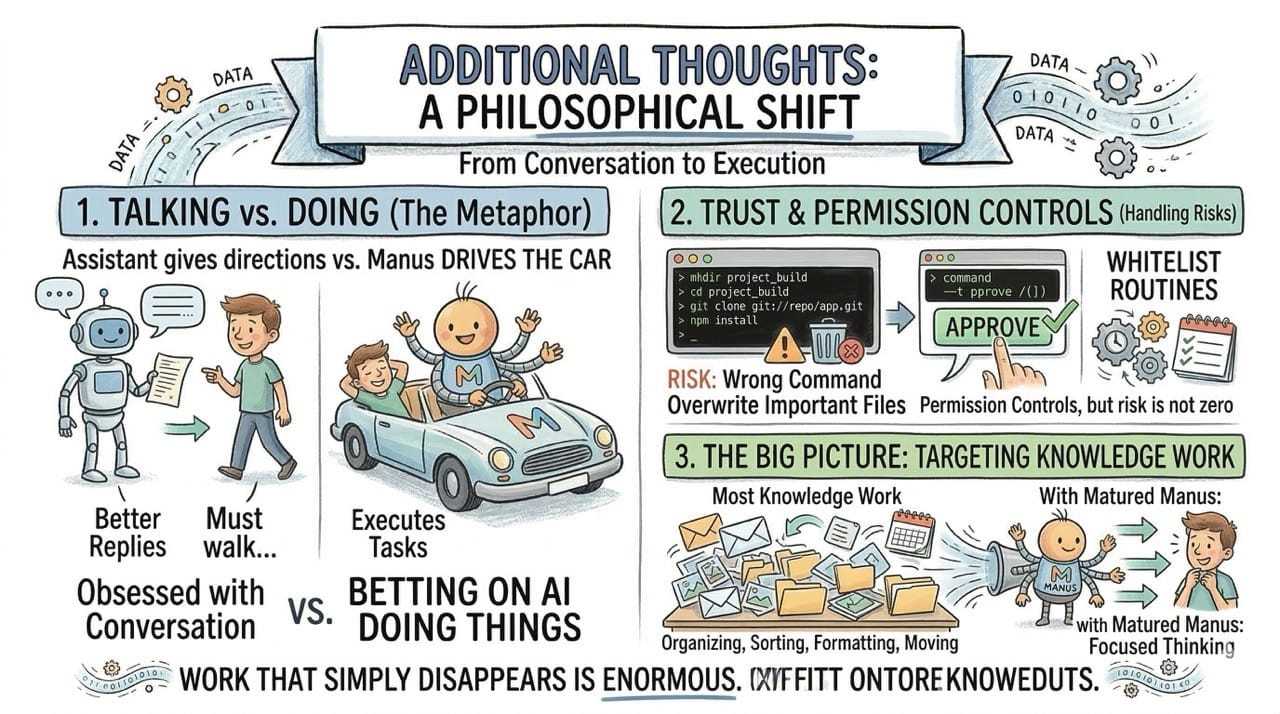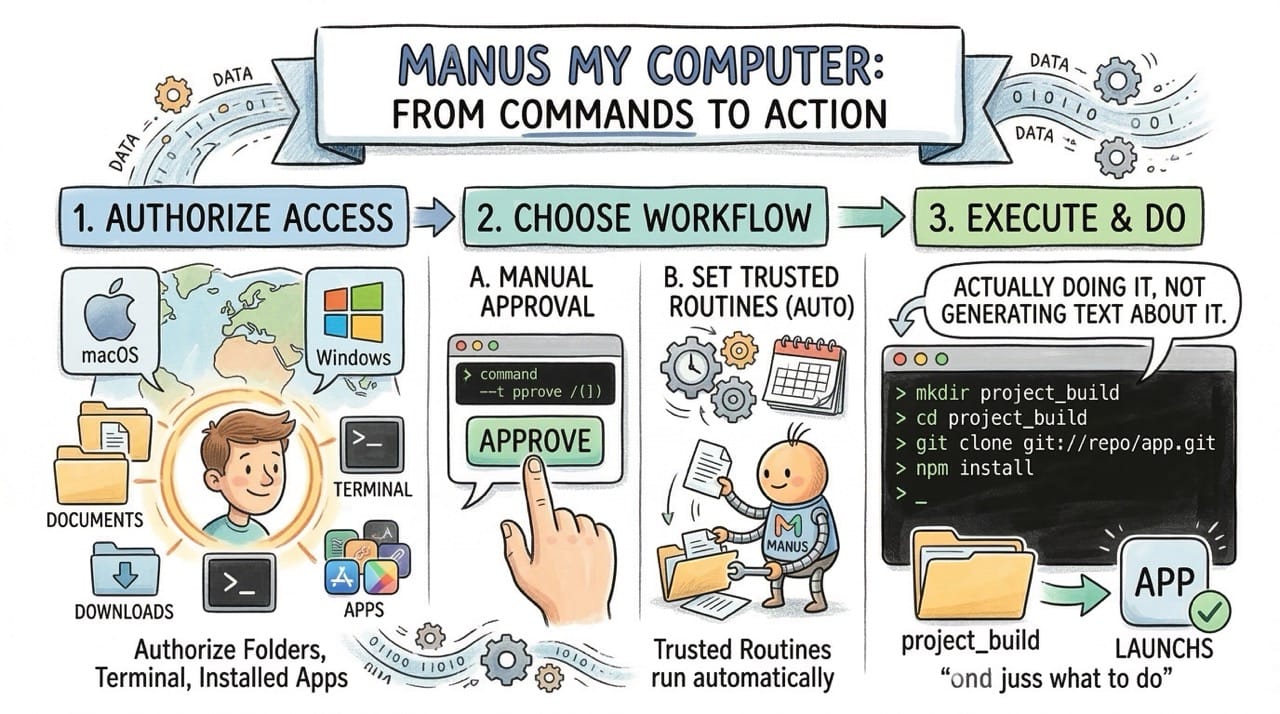 Manus handles this with permission controls. You approve each action or whitelist routines you trust. But the risk is not zero.