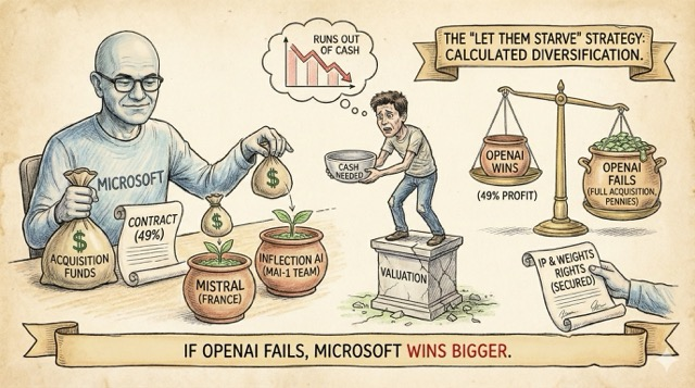 If OpenAI fails (runs out of cash or loses to Gemini), Microsoft wins bigger.