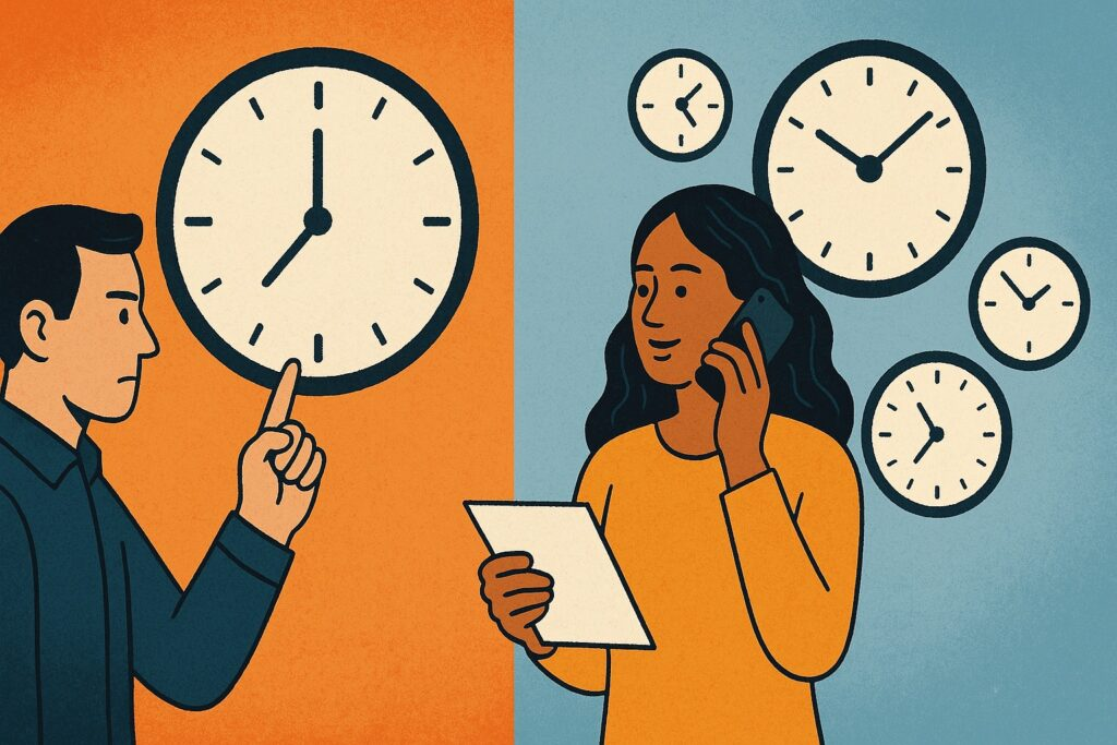 - Monochronic (M-Time): Time is linear, a commodity. It can be “spent,” “saved,” “wasted,” or “managed.”