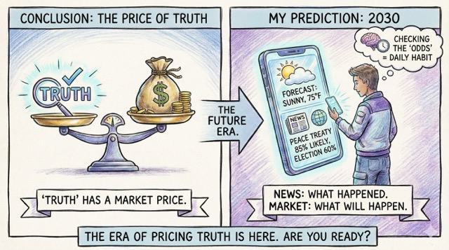 My Prediction: In 2030, checking the “odds” on a news event will be as common as checking the weather forecast. The news tells you what happened; the market tells you what will happen.