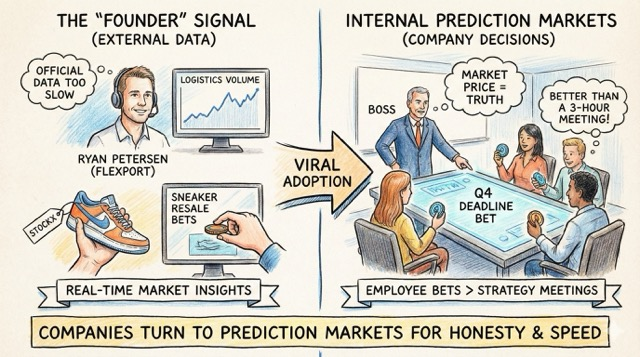 - Ryan Petersen (Flexport): Famously used prediction markets to gauge logistics volume recovery because official data was too slow.