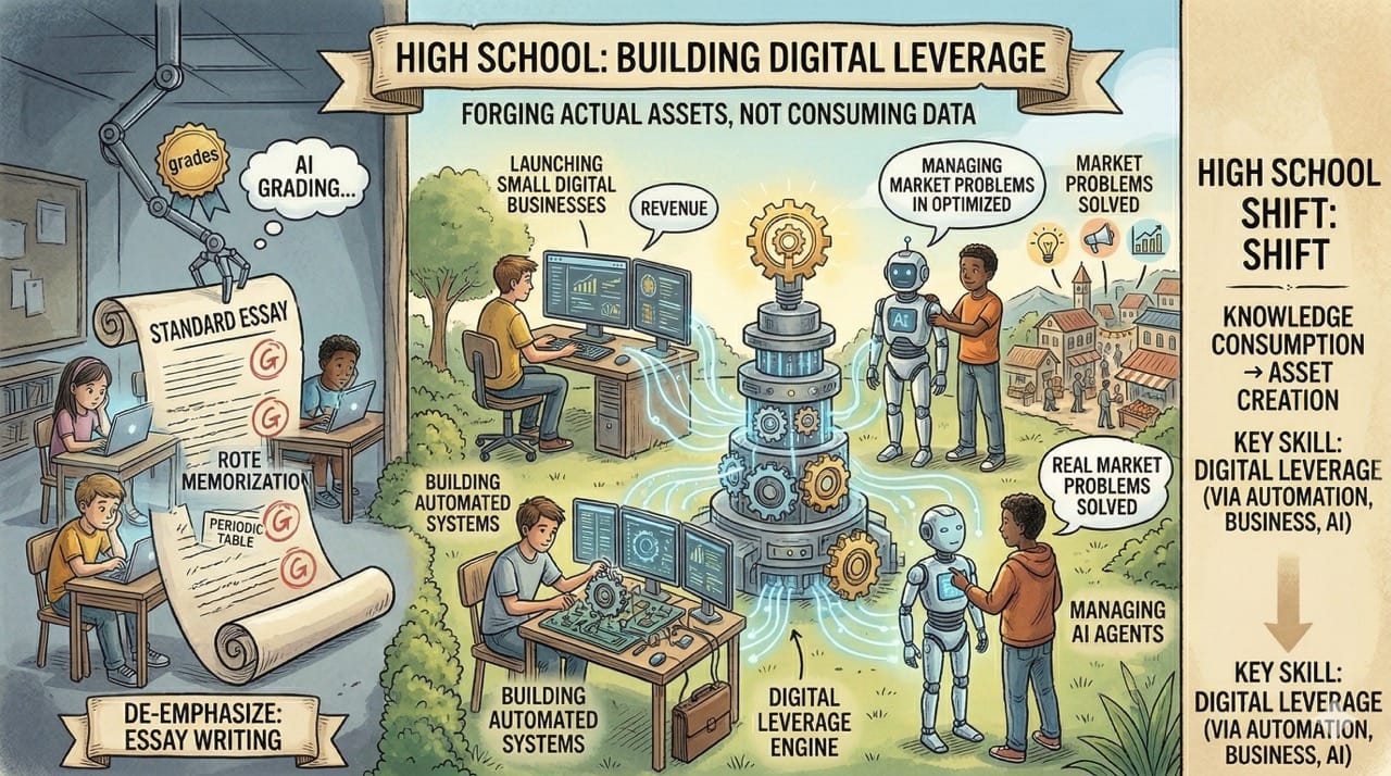 High school is the precise moment to start building actual digital leverage. Students should stop writing standard essays that will inevitably be graded by an AI algorithm.