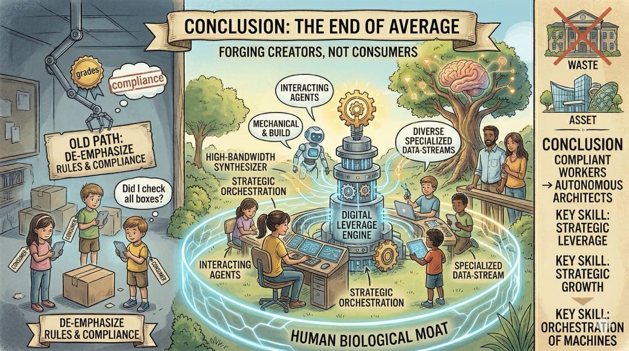The era of the safe, average corporate job is officially dead. Parents must stop preparing their children to be compliant workers and start training them to become irreplaceable strategic assets.