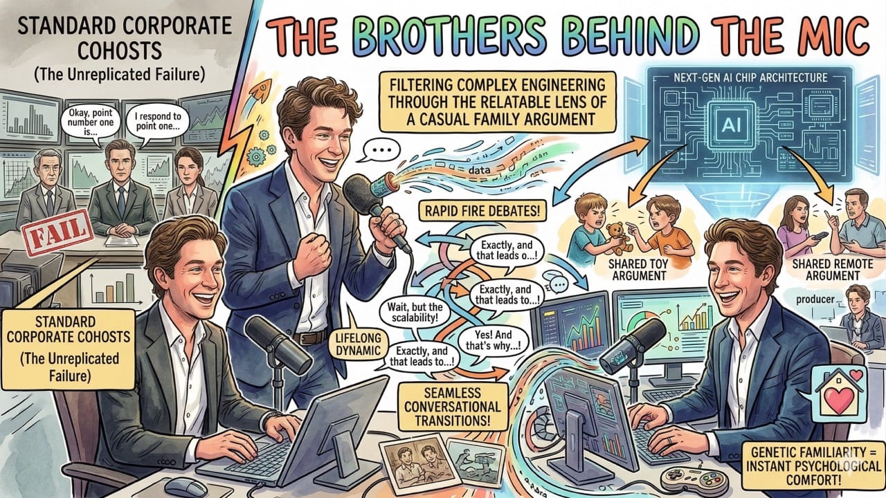 Their genetic familiarity allows for rapid fire debates and seamless conversational transitions that standard corporate cohosts can never successfully replicate.