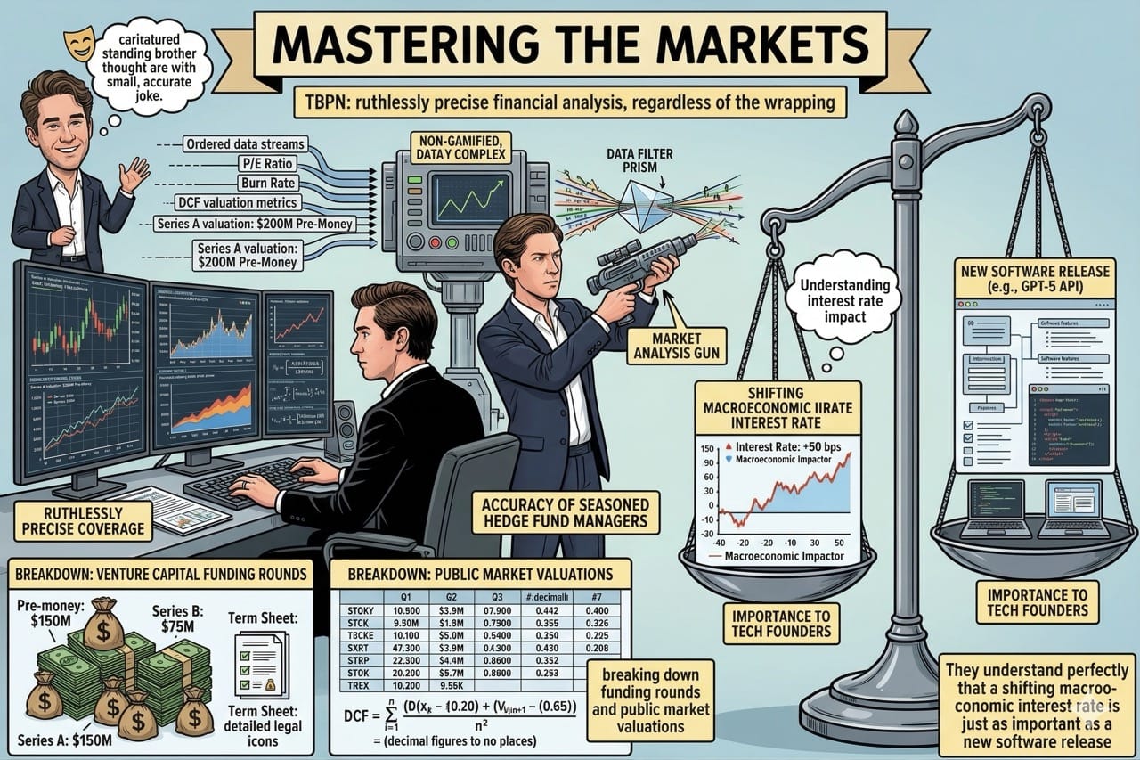 Financial media is usually incredibly dry and brutally boring to consume on a daily basis. TBPN solved this massive engagement problem by wrapping hardcore market analysis in a highly entertaining, brotherly dynamic.