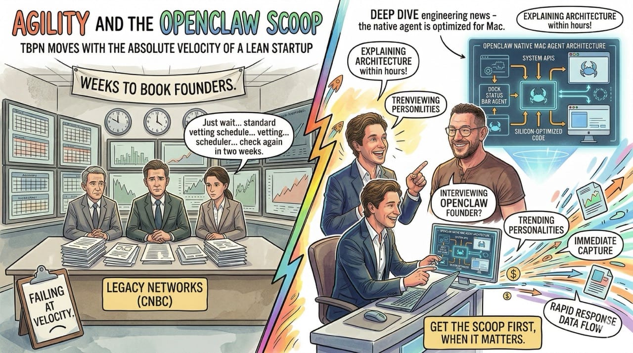 When the founder of OpenClawd recently broke the internet with their native Mac agent, TBPN had them on the microphone explaining the architecture within hours.