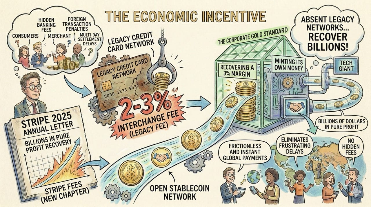 The financial incentive for tech companies to adopt this technology is absolute. Every time you buy something online, legacy credit card networks extract a two to three percent interchange fee.
