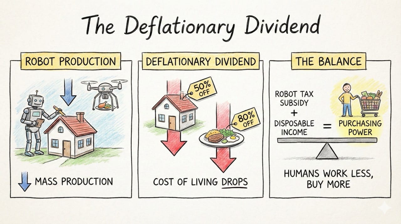 The Balance: The Robot Tax subsidizes the cost of goods. Even if disposable income drops (because humans work less), purchasing power might actually increase because everything is cheaper.