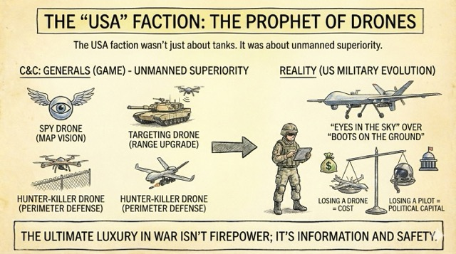 This is exactly how the US military evolved. We moved from “boots on the ground” to “eyes in the sky.” The game predicted that the ultimate luxury in war isn’t firepower; it’s information and safety.