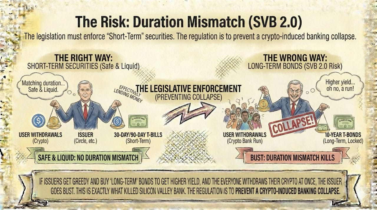 If issuers get greedy and buy "Long-Term" bonds (10-year) to get higher yield, and then everyone withdraws their crypto at once, the issuer goes bust.