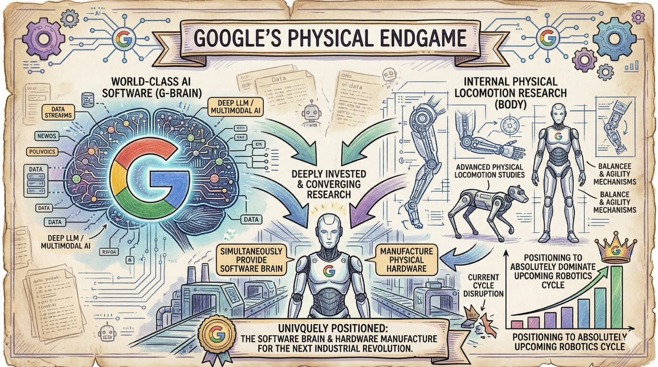 They are uniquely positioned to simultaneously provide the software brain and manufacture the physical hardware for the next industrial revolution.
