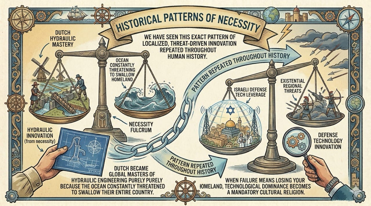 We often attribute the explosion of technological startups to massive venture capital and comfortable academic incubators. In reality, the most powerful catalyst for relentless innovation is the immediate existential threat of national extinction.