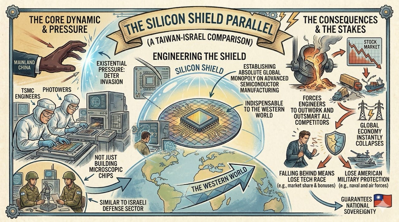 The engineers at Taiwan Semiconductor Manufacturing Company operate under the exact same existential pressure as the Israeli defense sector.