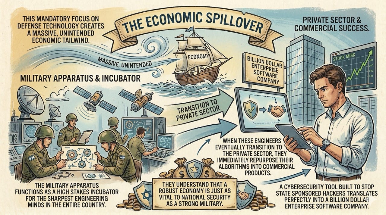 The military apparatus functions as a high stakes incubator for the sharpest engineering minds in the entire country.
