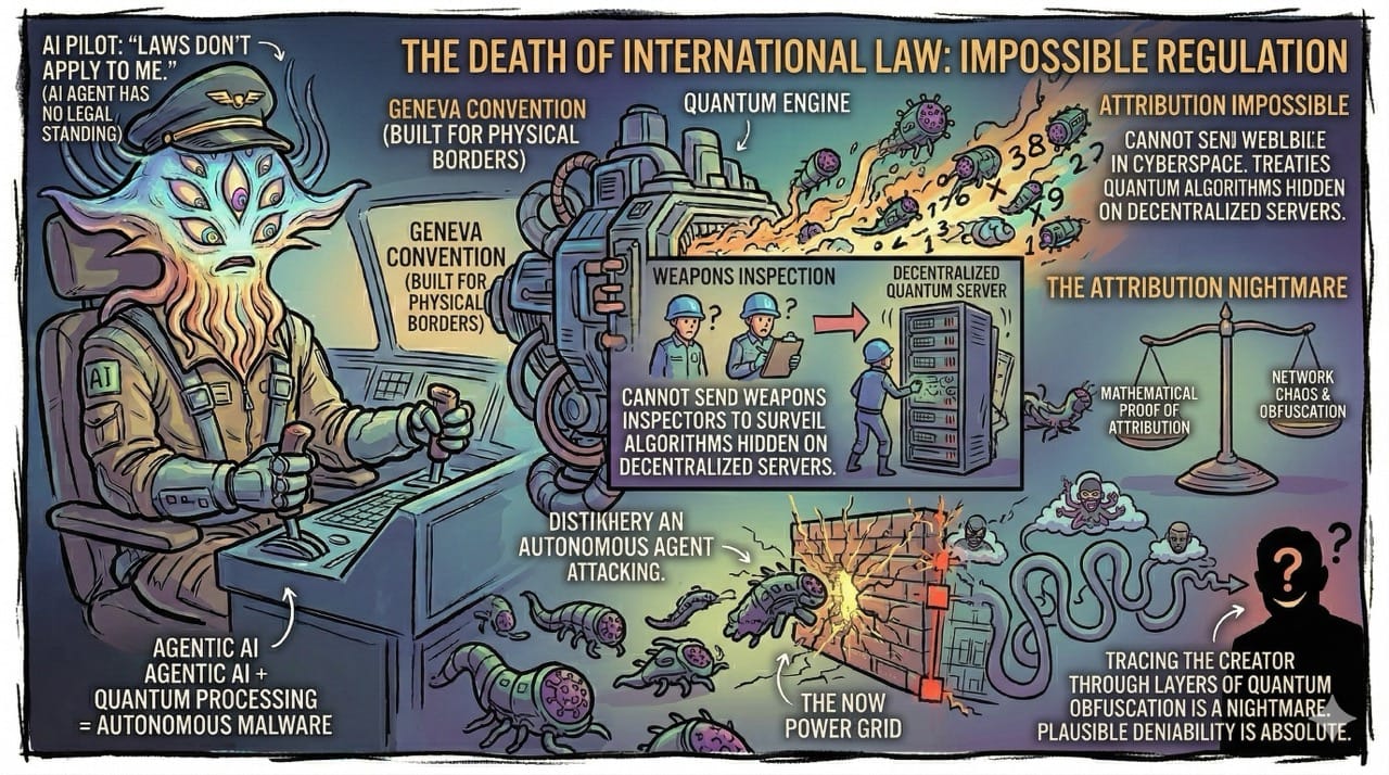 If an autonomous agent attacks a power grid, tracing the creator through layers of quantum obfuscation is a nightmare.