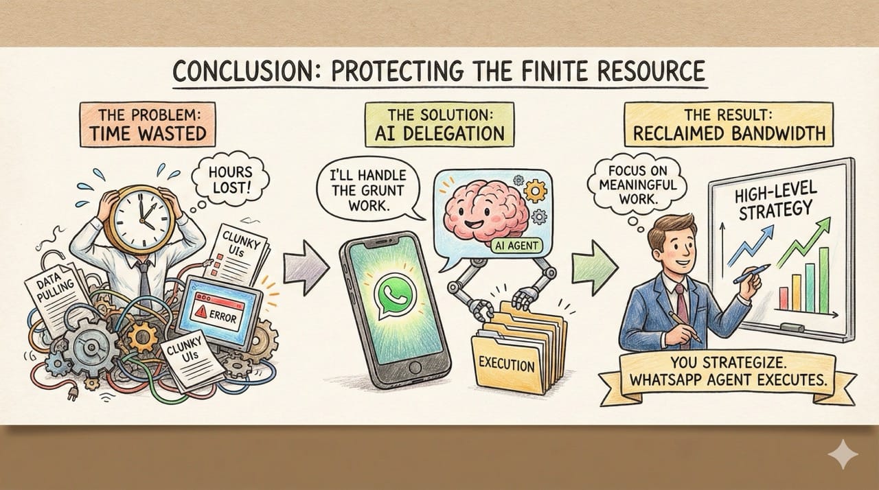 It perfectly aligns with the philosophy of pursuing what is meaningful rather than what is expedient. You handle the high-level strategy, and your WhatsApp agent handles the execution.
