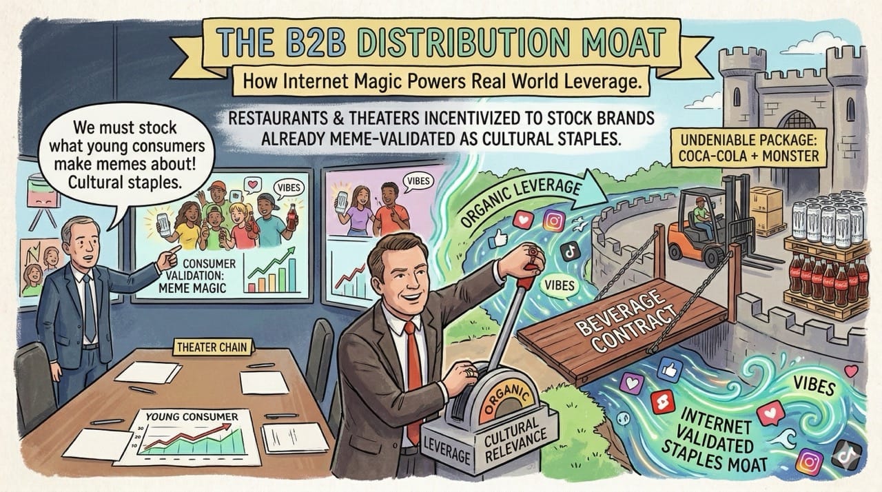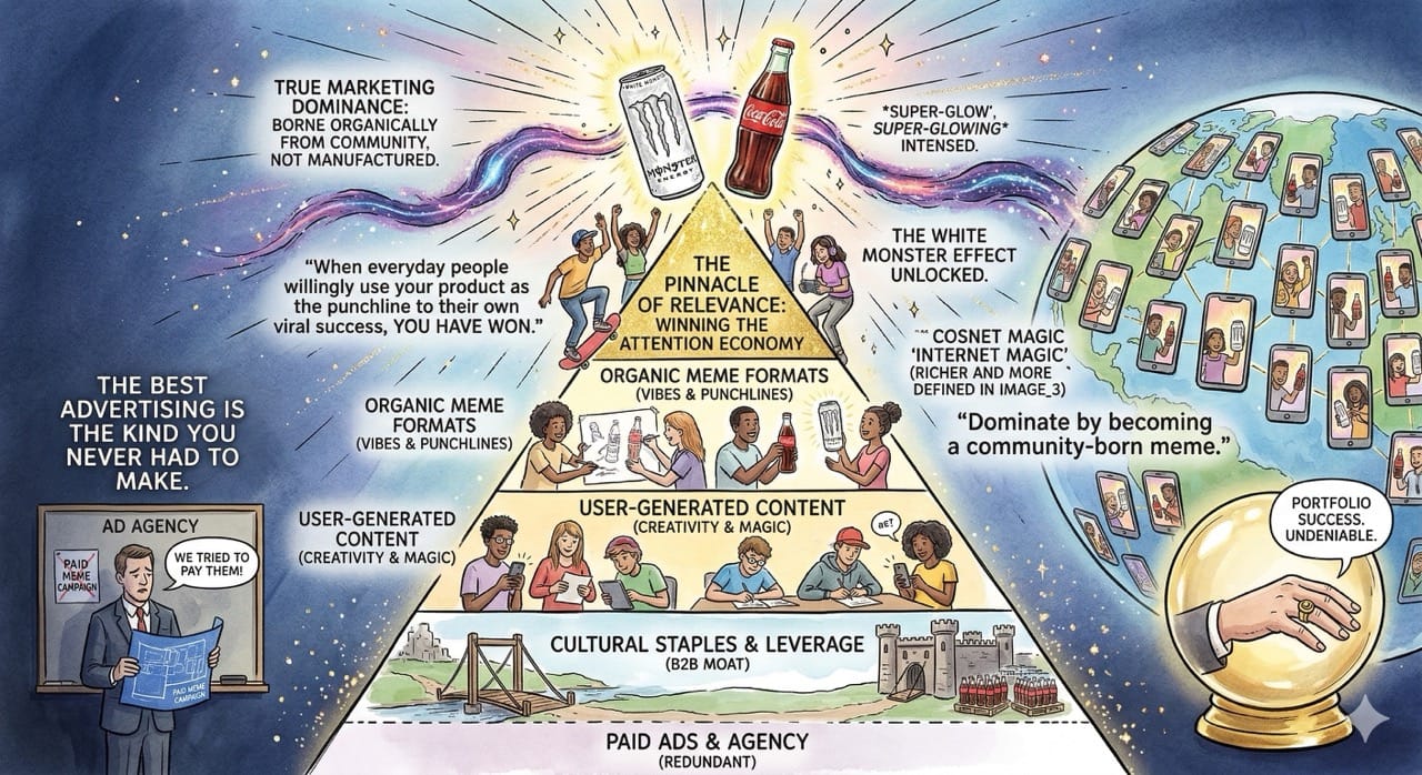 Coca-Cola and Monster Energy do not just sell beverages. They engineer organic viral loops that dominate social media algorithms and create an unbreakable moat for global distribution.