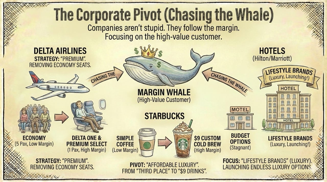 Why your coffee costs $7 and why every airline is removing economy seats. The middle is a kill zone, and brands are fleeing to the safety of the rich.