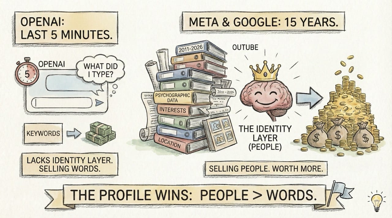 My Prediction: OpenAI will struggle to monetize via ads because they lack the "Identity Layer."